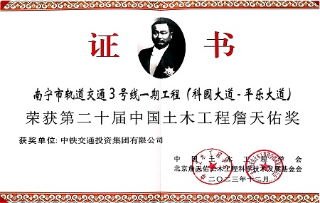 • 斬獲雙料大獎(jiǎng)!中鐵交通南寧軌道交通3號(hào)線項(xiàng)目再獲詹天佑獎(jiǎng)